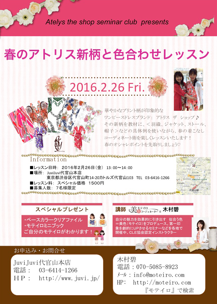 | レッスン場所 | 春のアトリス新柄と色合わせレッスン JuviJuvi代官山本店にて |